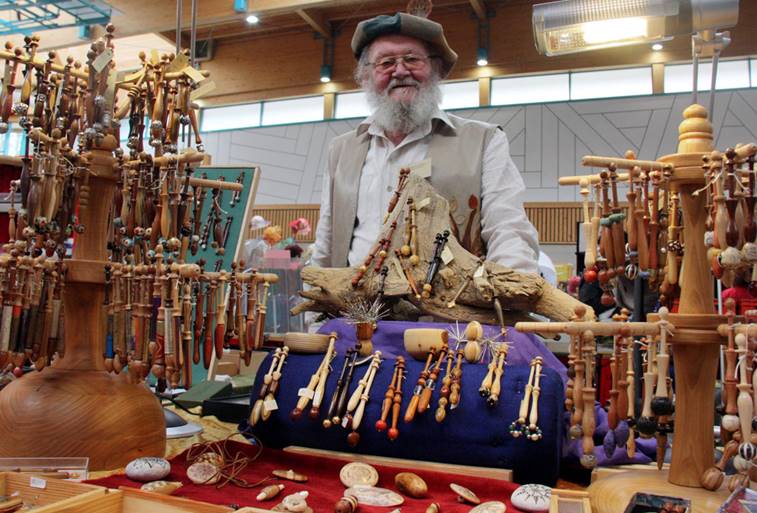 Außergewöhnliche Klöppel, jedes Paar ein Unikat,  wurden von Laurenz Mayer seinen Kundinnen präsentiert.