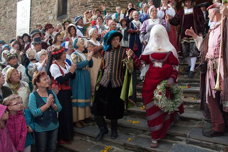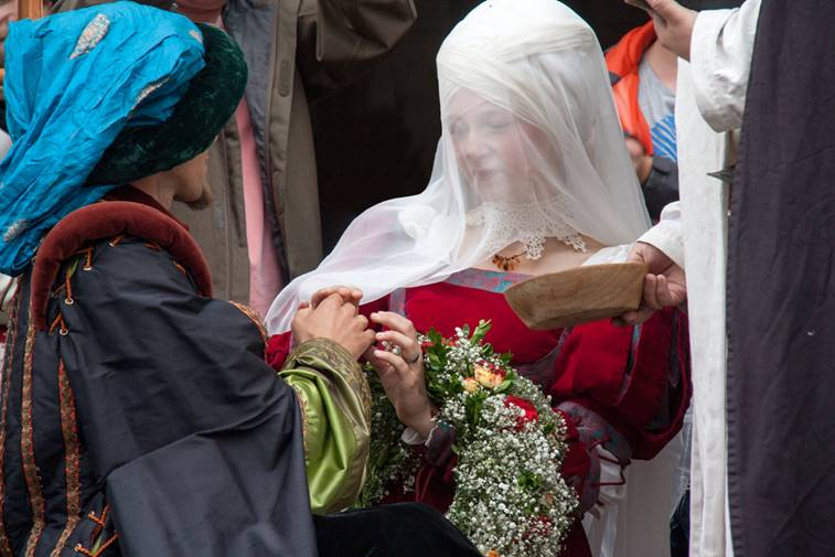 nachgestaltete Hochzeitszug von Barbara und Christoph Uthmann zur Annenkirche